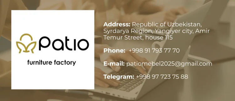 Eco Wood Plyus LLC a manufacturer of high quality furniture under the "Patio" trademark. We create furniture that combines style, comfort, and reliability. Our mission is to enhance the quality of life by providing innovative solutions for both homes and businesses. Every piece of furniture by Patio is the result of high-quality materials, innovative technologies, and thoughtful design. Our team consists of professionals with many years of experience in furniture manufacturing who know how to create a cozy space that meets your expectations. We take pride in offering a wide range of well-designed, high-quality products thanks to our in-house design bureau.